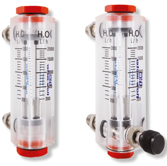 The flowmeters type RG/S-RG/R are instant flow measuring devices, suitable for small and medium flows of liquid and gaseous fluids. The flow measurement can be read with good accuracy on the graduated scale inprinted on the flowmeter body. The measure cone is got directly from the acrylic body. They can be made with threaded and square connections, with or without needle valve.