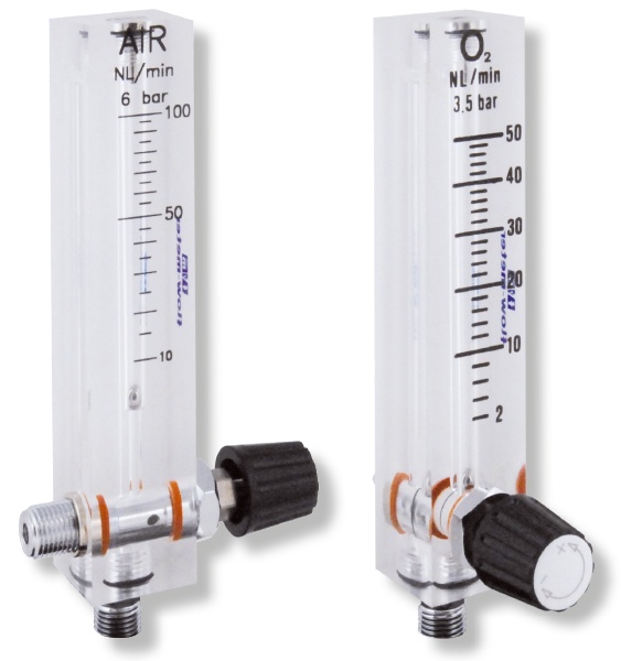 The direct reading flowmeters type RM are flow measuring devices suitable for small flows of liquid and gaseous fluids. The measure cone is got directly from the acrylic body of the flowmeter. They can have three different constructions: with square connections (with or without needle valve), with lateral or frontal connections with needle valve. Their working principle is very simple and they are particularly suitable for gas-therapy, purge, analysis and level measurements.