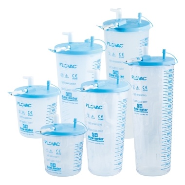 The disposable containers FLOVAC® are used to collect the organic fluids in suction. THE PRODUCT PHYLOSOPHY The disposable containers FLOVAC® are used to collect the organic fluids in suction. Designed and manufactured for high flow and high vacuum applications, the containers FLOVAC® are the best expressions as regards use practicality and safety, both for the operator and for the hospital plant and ambient, thanks to the use of absolutely reliable and innovating construction materials. With FLOVAC® the use and the replacement operations are simplified to reduce the plant stops to a minimum in each application. Moreover FLOW METER has conceived and carried out a complete range of accessories aimed to cover the greatest number of applications in hospitals. APPLICATIONS Thanks to their great versatility and simplicity, the disposable containers for suctioned liquids FLOVAC® are used with success in General and Special Surgery and in Intensive Care treatments. They are available both in a Liner construction consisting of a rigid reusable jar of support and a disposable collection system, the latter made of a soft liner bag hermetically welded to a lid, and in a Canister construction consisting of a rigid and disposable jar and a lid to be hermetically matched to it. This lid has connectors that make it possible to connect the collection container with the suction line and with the patient. An antibacterical and hydrophobic shut off filter made of GORE-TEX® protect the device and/or the vacuum system. Moreover the filter works as an overflow valve stopping the suction if the maximum filling level is reached. The PATIENT port allows the suction of fluids containing bone fragments, once the angled connector is removed. If a collection capacity exceeding the maximum volume available is needed, it is possible to add, thanks to the TANDEM connector, two or more devices connecting them in cascade: in such a way the collection capacity of the system is increased. A graduated scale, printed on the external jar, makes it possible to check the volume of the collected liquid. According to the real needs of the volumes to be suctioned, it is possible to choose the size of the device to use (1.0 L, 2.0 L and 3.0 L). The hermetic seal of the lid makes disposal particularly hygienic, simple and safe, both for the patient and for the operators dealing with the removal and the replacement of this device. GENERAL FEATURES 1. Lid: made of high density polyethylene (HDPE), it includes the connections to the vacuum source, to the suction cannula and to TANDEM, besides the closing caps of the PATIENT and TANDEM ports allowing to hermetically close the container before disposal. Moreover the Canister construction has trip clips on the lid allowing an immovable matching with the jar, in order to grant maximum protection conditions during disposal. 2. VACUUM connection: it makes it possible to connect in an easy way the FLOVAC® device to the vacuum source. Moreover it works as an ON-OFF switch for quick intervention. 3. Angled reduction connector: it makes it possible to connect the patient suction tubing, also fitted with a cannula. If removed from the lid, it is also possible to suction fluids containing bone fragments. 4. Overflow valve: hydrophobic type with GORE-TEX® filter, it creates, in any condition, a barrier to the liquid flow. 5. Flexible bag (only for the Liner construction): made of low density polyethylene (LDPE), it is soft, light, clear, easy to handle and with a high physical/mechanical resistance. 6. Supporting jar (only for the Liner construction): reusable type, it is made of polycarbonate autoclavable at a temperature of 121° C. The printed graduated scale makes it possible an easy reading of the collected liquid volume. 7. Canister container: disposable, it is made of Light HDPE unbreakable to shocks. The printed graduated scale makes it possible an easy reading of the collected liquids volume. To consult this product features, please go to the page of the on-line catalogue by using the following link: