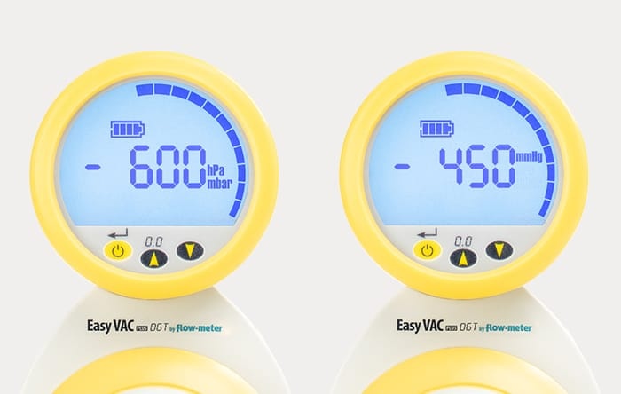 In addition to all the device setting possibilities already found in the previous EasyVAC® PLUS DGT version - from the possibility to configure the unit of measure of the scale and programming the automatic shutdown time when not being operated to setting a warning depression value when manually reset to compensate the changes in the ambient conditions - the user can now also manually set the backlighting ON period of time.