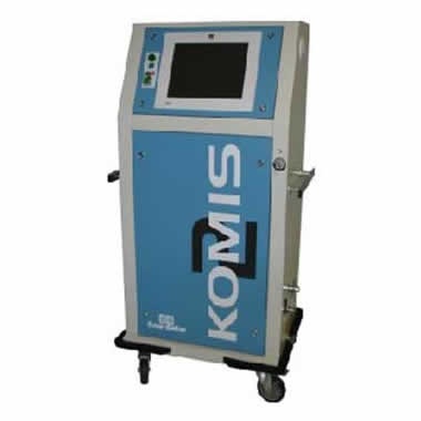 Komis 2 is composed of two NO cylinders in known N2 concentration (within 1000 ppm), a supply control system, managed by CPU as well as by servoactuators required for N2 circuits cleaning process. NO supply system Komis 2 is a calibrated orifice flow generator device (cylinders of NO diluited in Nitrogen of known concentration) with adjustable pressure controlled from a proportional electrovalve. Needed supply pressure to support right ppm/min of planned therapy are calculated by CPU with known cylinders’ NO concentration. Komis 2 also has a calculation utility that obtains NO value from I/E patient ratio and his inhalation frequency. Feeding is admitted only after inerting of involved circuits by N2 contained in the third cylinder to avoid NO reaction with environmental humidity, generating Nitric Acid or with O2 generating NO2. The inerting procedure forecast the exhaust of washing gases directly through a filter suitable for nitrogen oxides depressurized by a system powered by compressed air. Same system provide depressurization into the whole cabinet to avoid atmosphere immission of small NO leakeage (defectives proofs, gaskets and so on…)