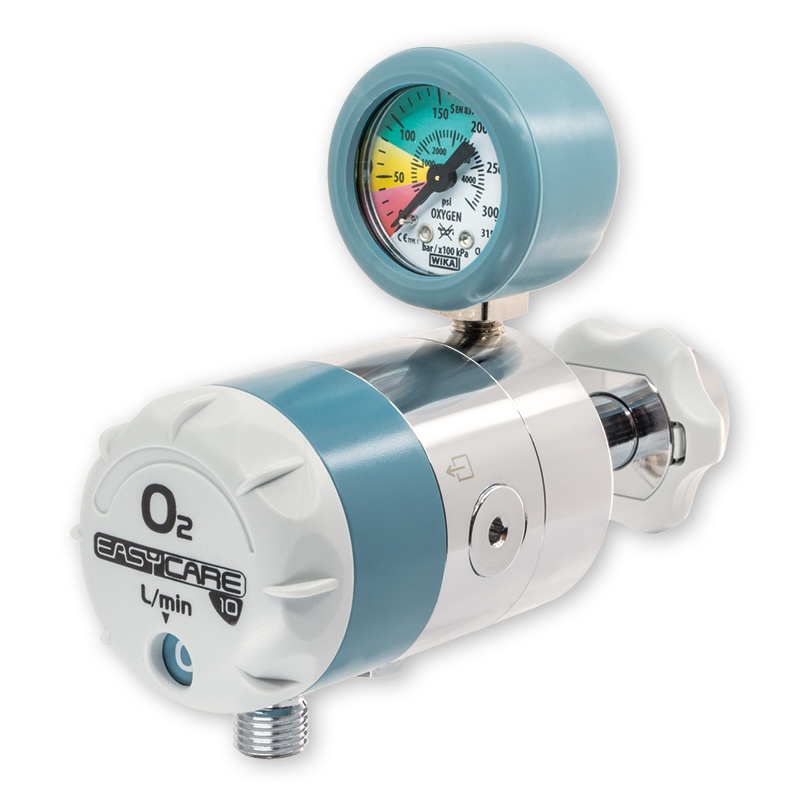 The EASYCARE® two stage pressure regulator is suitable for direct mounting on oxygen cylinders.