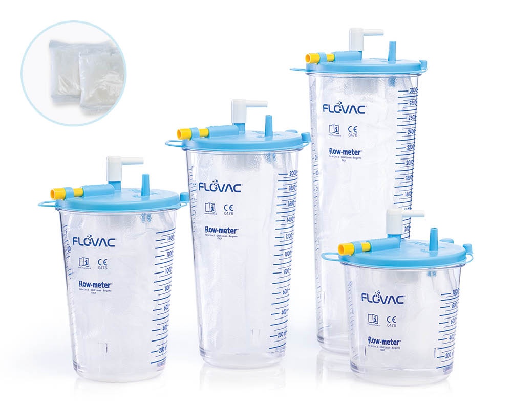 The FLOVAC® disposable containers are used for the collection of organic fluids in suction and have been designed and manufactured for applications of “high flow and high vacuum” (EN ISO 10079-1 and EN ISO 10079-3).